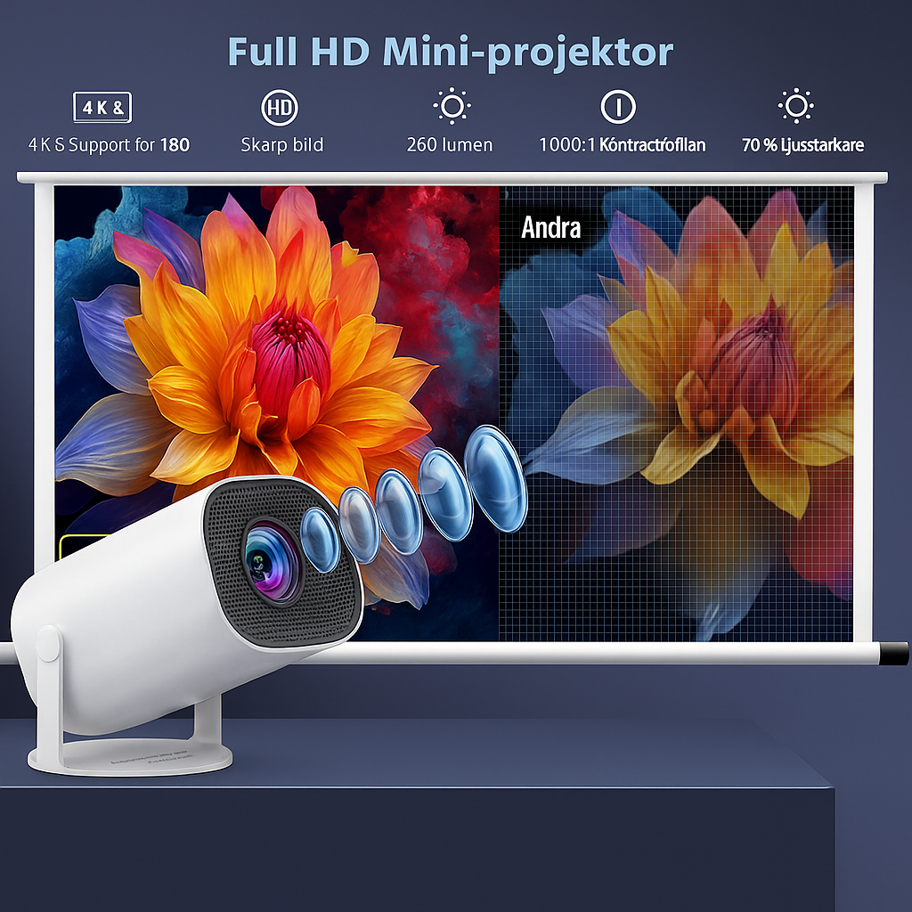 🖼️ Justerbar projektionsvinkel & klar bild