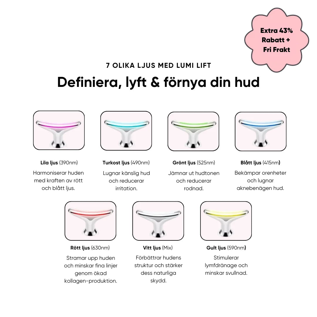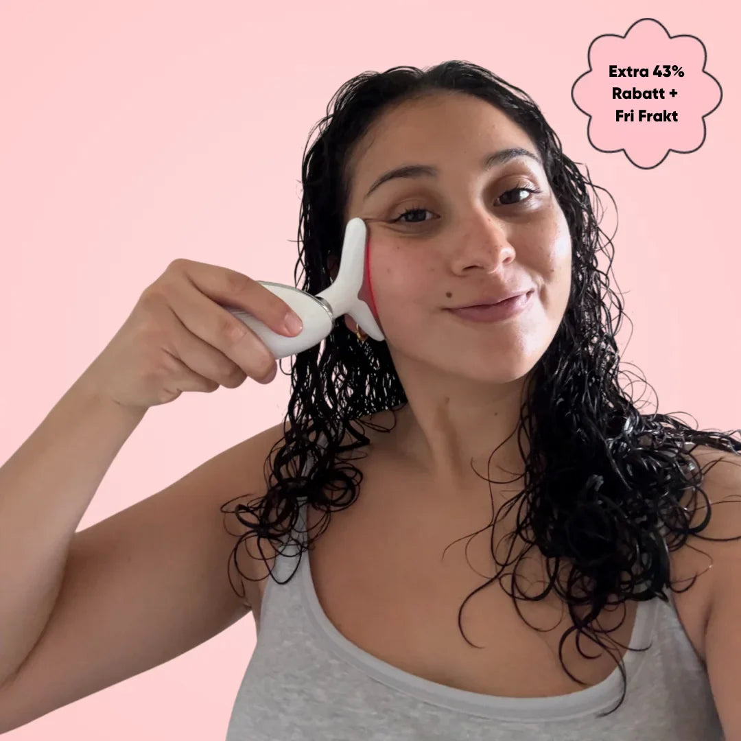 GlowLift™ kombinerar LED-ljusbehandling med EMS-vibrationer för att stimulera kollagen, reducera fina linjer och ge en fastare hy.