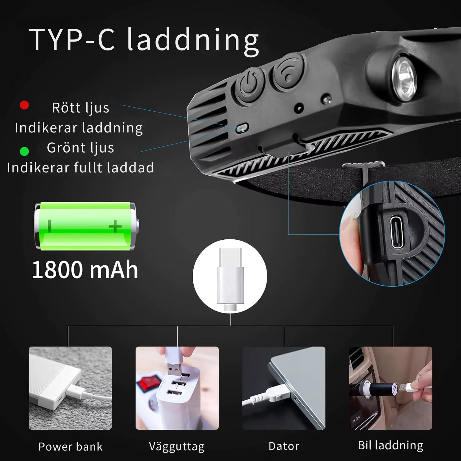 🔦 Upp till 1000 lumen – kraftfullt ljus i totalt mörker